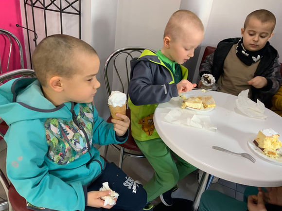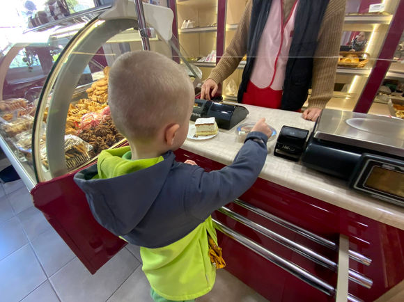 wizytą w cukierni i zakupami w sklepie z warzywami.